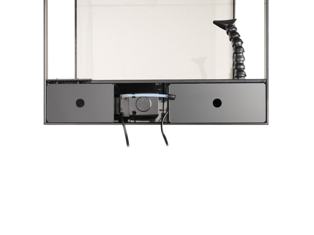 - Materiál: přední a boční skla z 6 mm skla Opti s výztuhou Safe Tank, sklo oddělující expoziční část od filtrační části z černě tónovaného skla, netoxická filtrační média (BioCeraMAX 600).