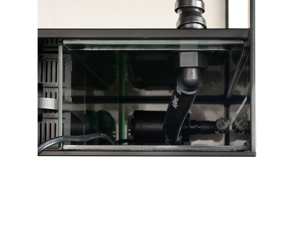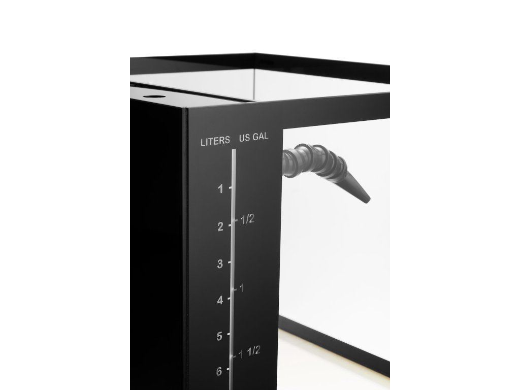 Přední a boční skla nádrže jsou vyrobena s použitím skla Opti. Takové sklo prošlo procesem odlehčování, čímž se odstranil nazelenalý odstín a zajistila se křišťálová čistota a vysoká propustnost světla. Leštěné hrany zajišťují estetický vzhled. Eleganci nádrže podtrhuje černý rám a pečlivé lepení černým silikonem.