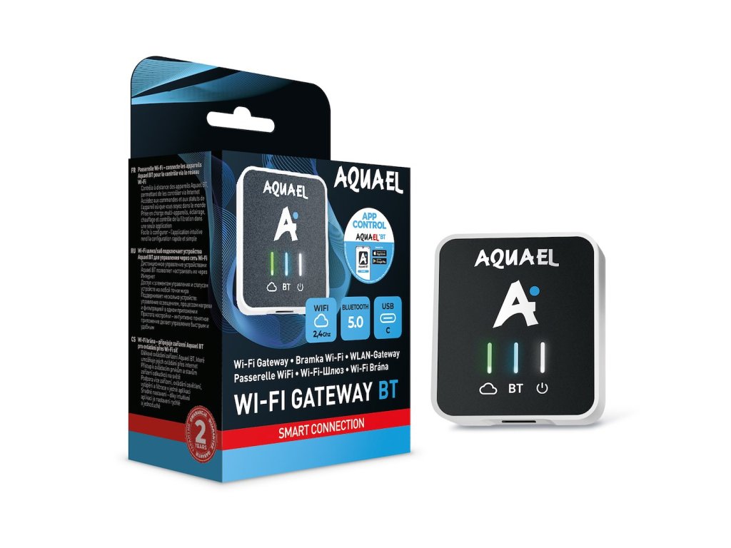 WiFi Gateway BT je nejmodernější zařízení, které otevírá zcela nové možnosti vzdálené správy akvarijních zařízení Aquael. Umožňuje ovládat kompatibilní zařízení odkudkoli na světě - potřebujete pouze chytrý telefon a přístup k internetu. Toto zařízení umožňuje ovládat filtraci, topení a osvětlení jednoduše prostřednictvím telefonu nebo tabletu! Zlepšíte tak každodenní péči o akvárium a stabilitu parametrů vody i účinnost používaných zařízení.