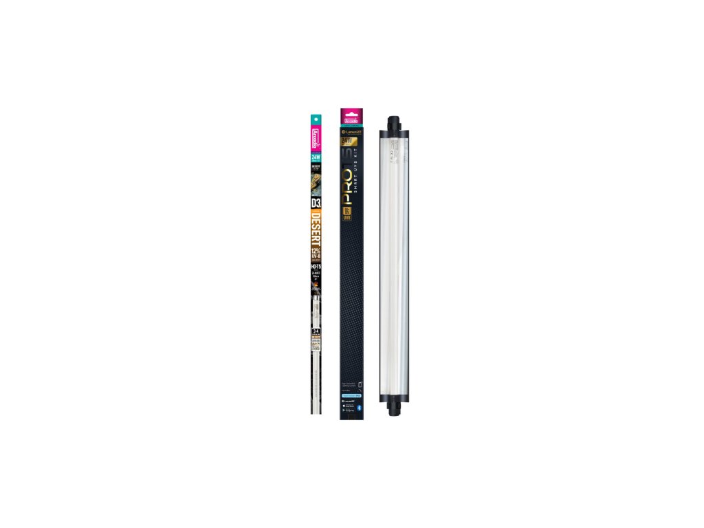 PRO T5 LumenIZE® je značně vylepšená kompletní sada provozní jednotky a UVB zářivky T5. Osvětlení je kontrolované aplikací, kterou si jednoduše stáhnete na stránkách výrobce zde (App Store) nebo zde (Google Play). PRO T5 LumenIZE® nepotřebuje být připojený k internetu, vždy se pouze spojí s Vaším telefonem či tabletem technologií Bluetooth. LumenIZE® je stmívatelné osvětlení, snadno proto napodobíte úsvit, stmívání, plné polední slunce či počasí pod mrakem. Zařízení si pamatuje své nastavení i v případě výpadku proudu díky vestavěné, vyměnitelné baterii, která vydrží cca 3 roky. Provoz je možný v pouštních i velmi vlhkých tropických teráriích díky voděodolnosti stupně IP65. Díky moderní technologii je úspora energie až 30%.