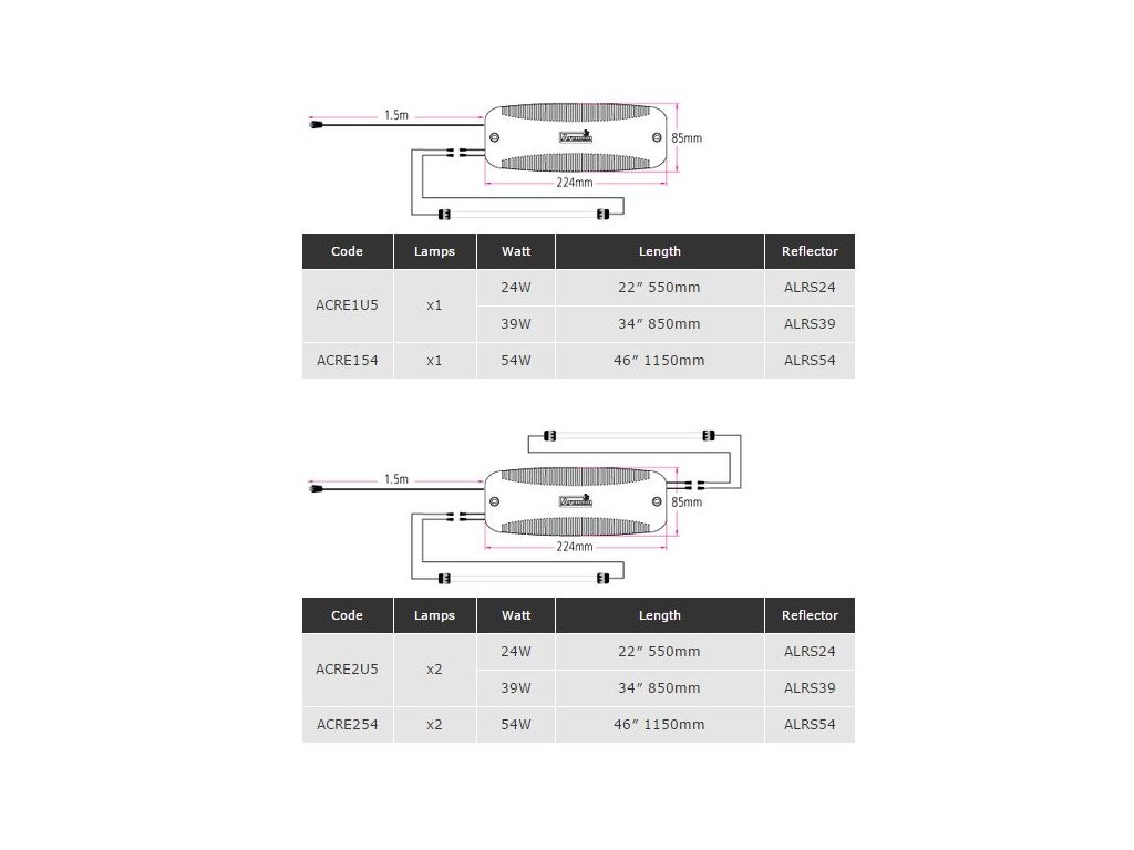 Příkon: | 28 W / 59 cm (T5), 35 W / 74,2 cm (T5), 39 W / 84,9 cm (T5) |