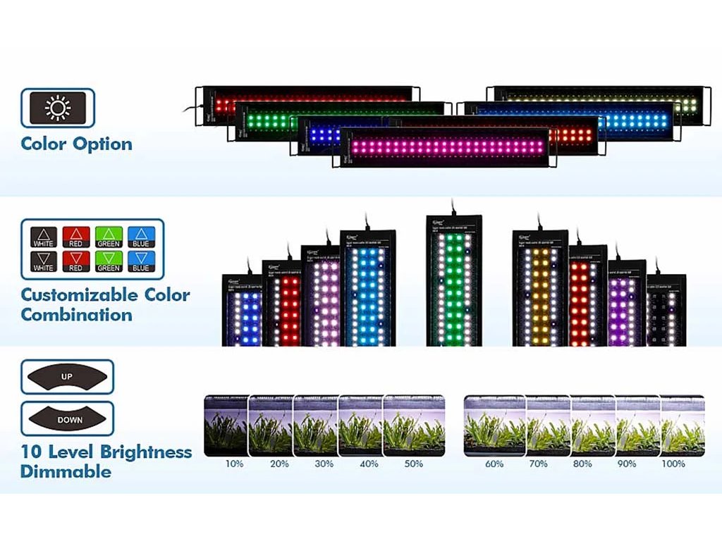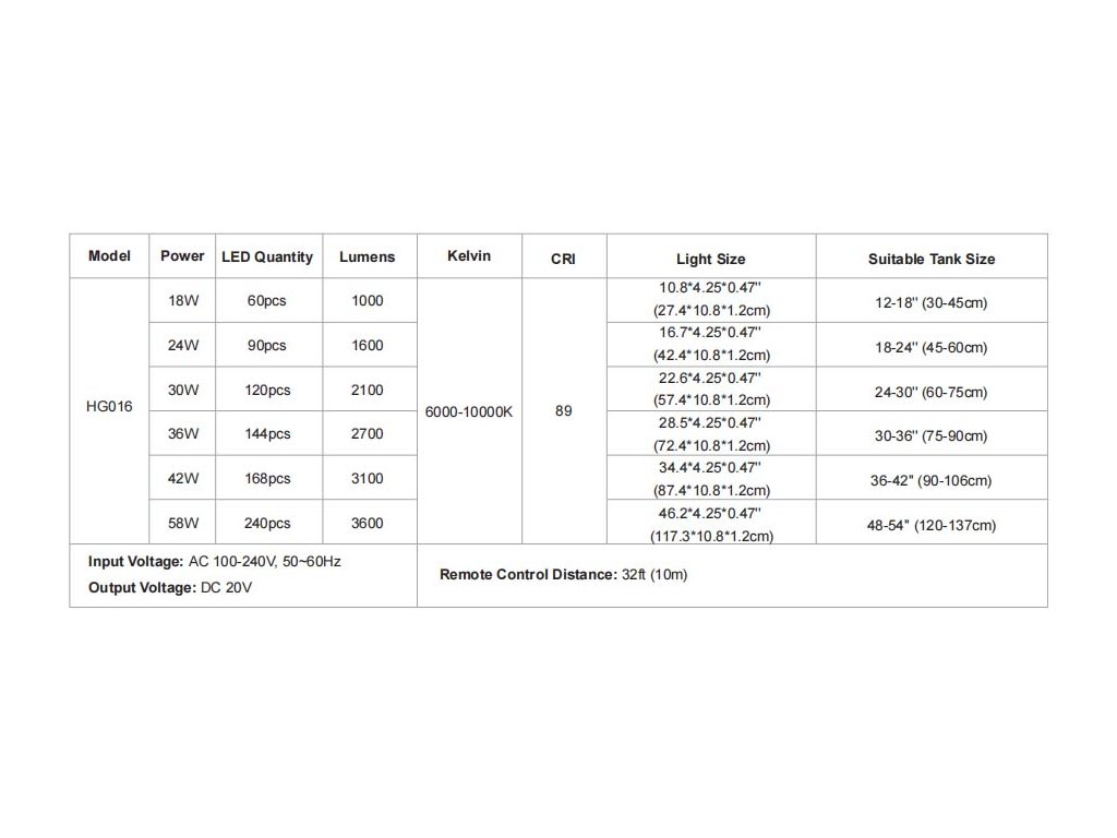 Hygger HG016 je světlo navržené pro akvaristy, kteří vyžadují vynikající osvětlení pro podporu růstu rostlin a svěží vzhled akvária. S elegantním, pouze 12 mm tenkým černým hliníkovým tělem je toto světlo výkonnou kombinaci LED technologie a sofistikovaného designu, což z něj činí ideální volbu pro sladkovodní akvária.