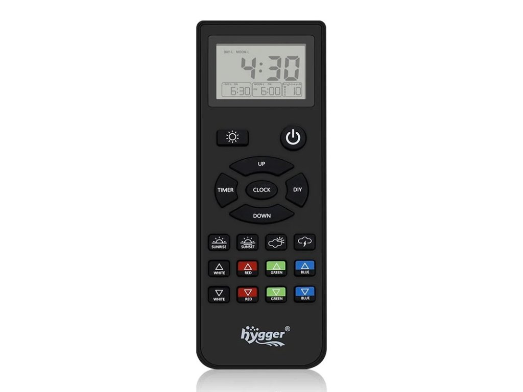 Díky přiloženému dálkovému ovládání můžete snadno změnit nastavení světla na vzdálenost až 10 metrů. Upravte spektrum barev, jas a časování osvětlení, přičemž vše se přehledně zobrazuje na integrovaném LCD displeji. Tento uživatelsky přívětivý systém zajišťuje přesné ovládání, umožňující vytvoření ideálního prostředí pro vaše rostliny i ryby.