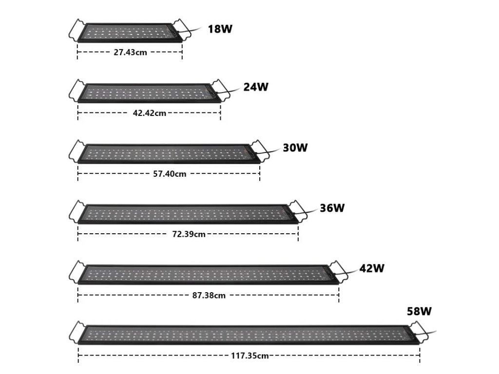 Hygger HG016 je světlo navržené pro akvaristy, kteří vyžadují vynikající osvětlení pro podporu růstu rostlin a svěží vzhled akvária. S elegantním, pouze 12 mm tenkým černým hliníkovým tělem je toto světlo výkonnou kombinaci LED technologie a sofistikovaného designu, což z něj činí ideální volbu pro sladkovodní akvária.