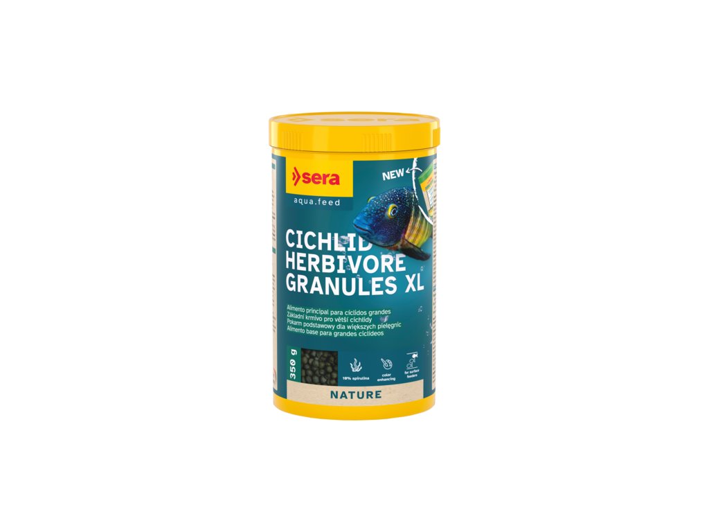 Cichlid Herbivore Granules XL je základní krmivo bez barviv a konzervačních látek, které se skládá z šetrně vyrobených granulí. Je vhodné zejména pro větší cichlidy, které se živí převážně rostlinami a perifytonem, a pro další větší ryby.