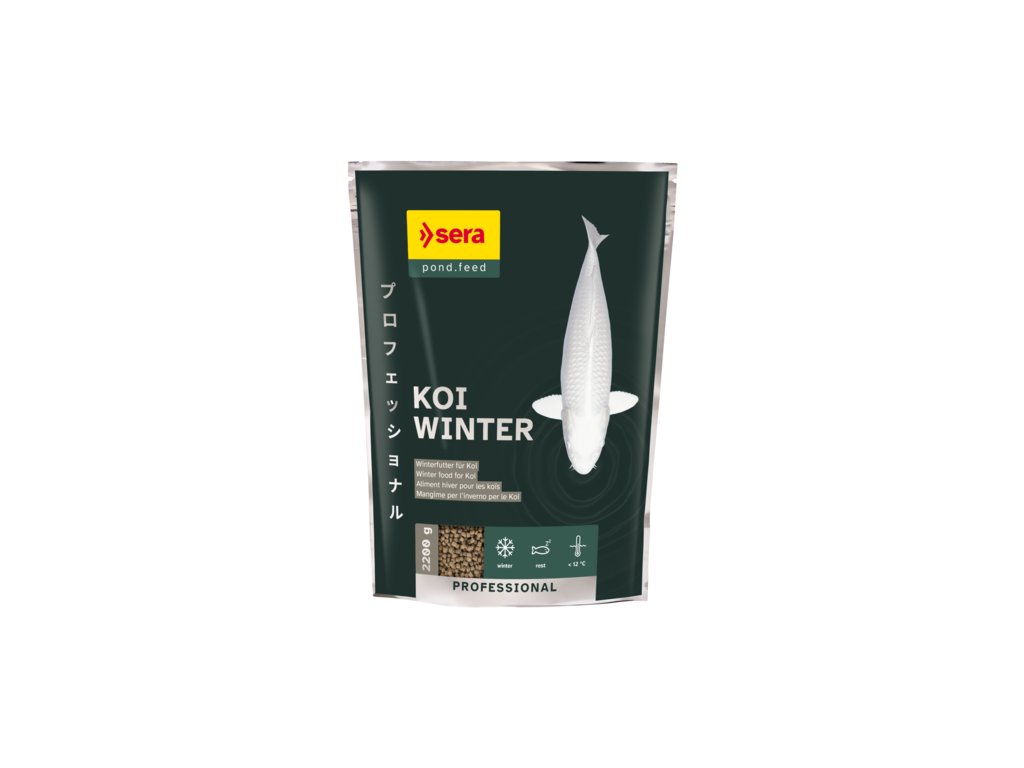 Koi Professional Winter je vhodné základní krmivo vyvinuté speciálně pro úroveň aktivity, potravní chování a nutriční požadavky Koi při nízkých teplotách. Esenciální, vysoce nenasycené omega-3 mastné kyseliny [kyselina eikosapentaenová (EPA) a kyselina dokosahexaenová (DHA)] obsažené v krmivu dodávají energii a chrání buněčné membrány. Vitamíny a Mannan-oligosacharidy posilují imunitní systém. Díky sníženému množství sacharidů je potravina obzvláště snadno stravitelná při nízkých teplotách. Rychle klesá ke dnu a zachovává si svůj tvar, takže ryby, které se v chladu pohybují pomalu, mají dostatek času na konzumaci, aniž by hrozilo, že se granule rozpadnou nebo rozpustí. Z těchto důvodů je toto krmivo ideální pro krmení při teplotách vody nižších než 12°C.