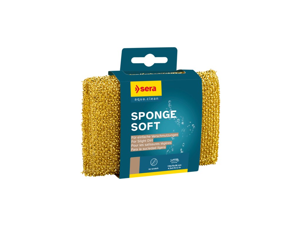Sponge Soft je určena právě pro tyto druhy nečistot. Houba je pokryta lurexovým povrchem a čistí sklo, aniž by ho poškrábala. Akvárium lze snadno a rychle vyčistit až do rohů pomocí nízkého tlaku. Uspořádání lurexových vláken vychází z přírodního vzoru: radula (rašplovitý orgán podobný jazyku), který se vyskytuje u většiny měkkýšů. Nahrazuje zuby a slouží k rašplování a krájení potravy. Šneci tuto ústní část používají k pasírování řas na skleněných a dekoračních předmětech.