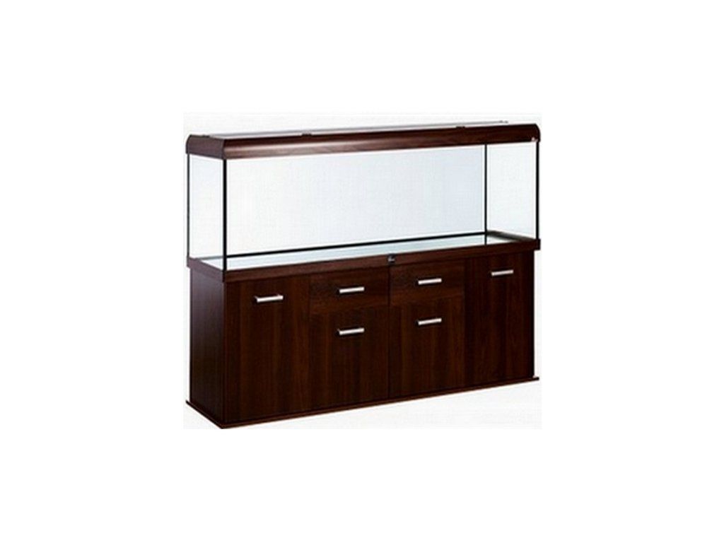 Vypuklá akváriová súprava s hliníkovým krytom a pevnou skriňou.