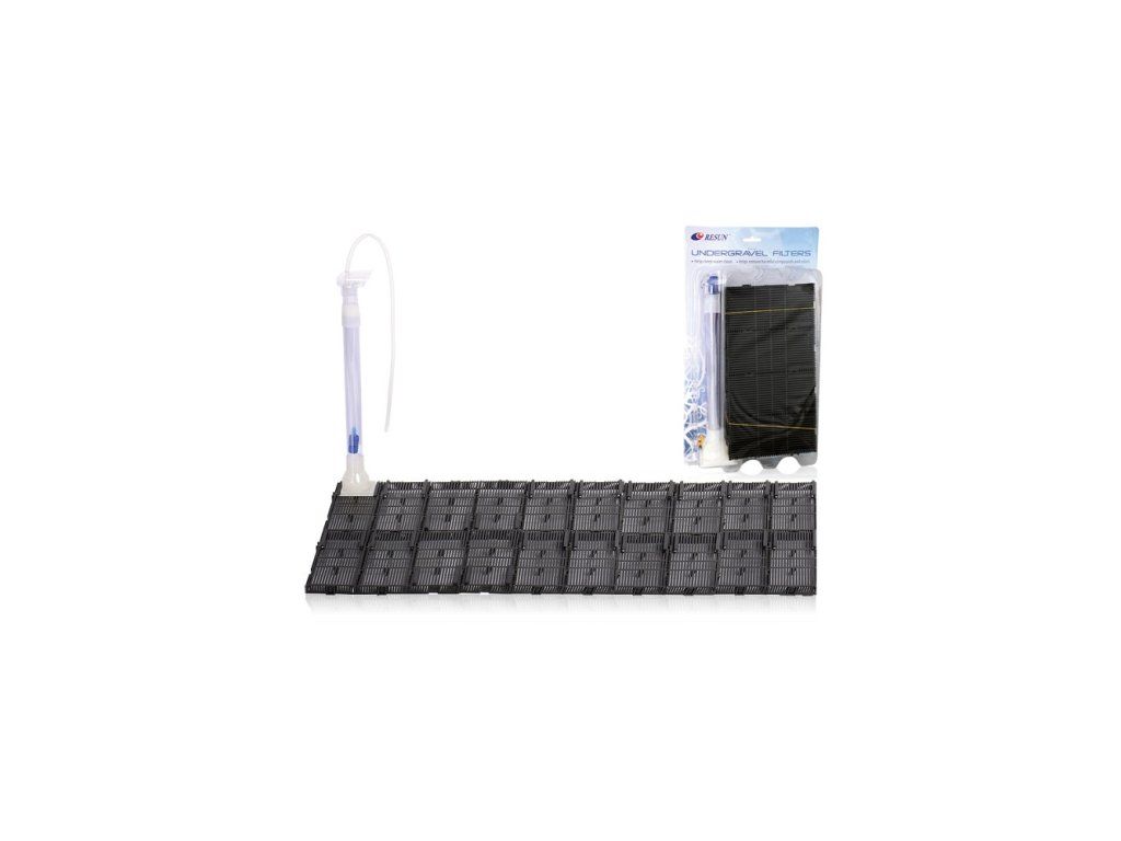 - Pôdny filter (poháňaný vzduchovým kompresorom) nasáva vodu z nádrže cez ploché dno (alebo aspoň jeho časť), voda prechádza cez vrstvu cez vrstvu piesku, filtruje sa a vracia sa do akvária cez potrubie.