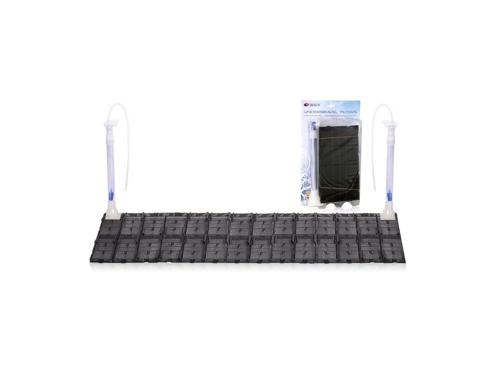 - Pôdny filter (poháňaný vzduchovým kompresorom) nasáva vodu z nádrže cez ploché dno (alebo aspoň jeho časť), voda prechádza cez vrstvu cez vrstvu piesku, filtruje sa a vracia sa do akvária cez potrubie.