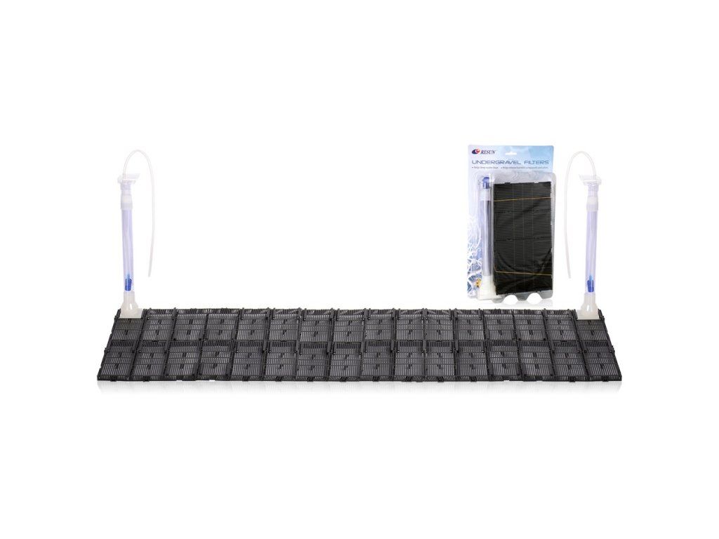 - Pôdny filter (poháňaný vzduchovým kompresorom) nasáva vodu z nádrže cez ploché dno (alebo aspoň jeho časť), voda prechádza cez vrstvu cez vrstvu piesku, filtruje sa a vracia sa do akvária cez potrubie.