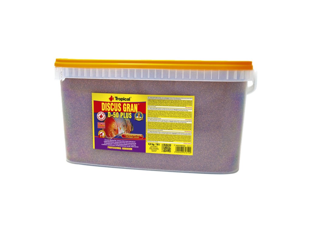 - Tropical Discus Gran D-50 Plus je farbivo vo forme potopiteľné granule s vysokým obsahom bielkovín (50 %) pre mladé a dospelé cieľové ryby, ale aj iné, obzvlášť náročné ryby.