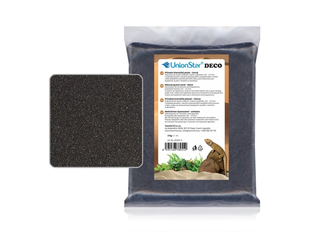 Terarijní písek DECO je vysoce kvalitní přírodní křemičitý substrát s jemnou frakcí 0,5–1,2 mm, dostupný v různých přírodních a atraktivních barevných odstínech. Písek je speciálně barvený testovanými technologiemi, které jsou bezpečné pro použití v teráriích i akváriích – nemění pH vody ani její chemické vlastnosti.