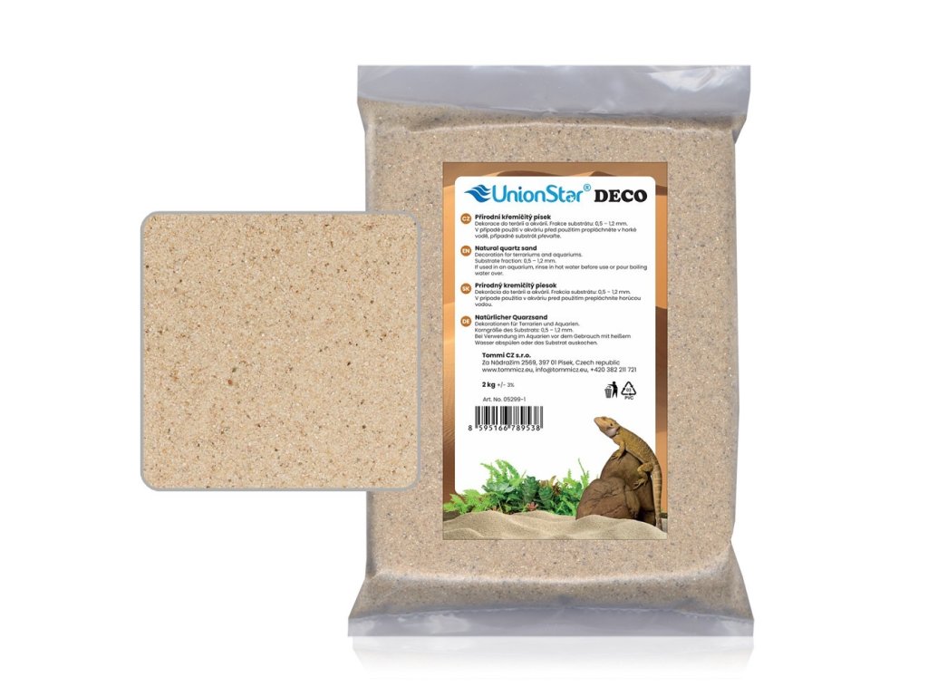 Terarijní písek DECO je vysoce kvalitní přírodní křemičitý substrát s jemnou frakcí 0,5–1,2 mm, dostupný v různých přírodních a atraktivních barevných odstínech. Písek je speciálně barvený testovanými technologiemi, které jsou bezpečné pro použití v teráriích i akváriích – nemění pH vody ani její chemické vlastnosti.