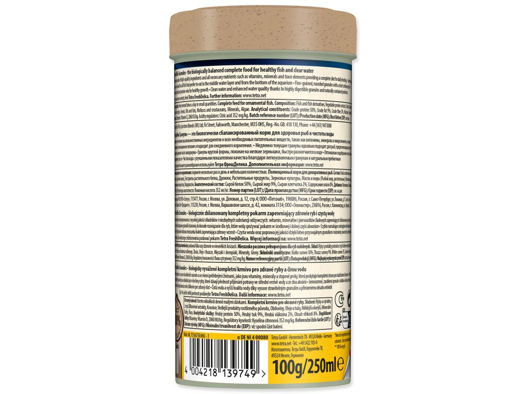 Granule rychle měknou a pomalu klesají ke dnu, díky čemuž jsou ideální pro ryby, které se krmí ve střední části akvária.